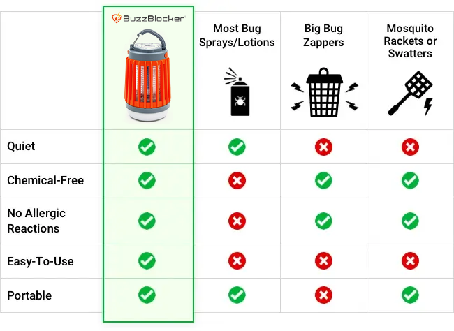 Works Instantly – BuzzBlocker uses advanced UV technology to attract 5x more mosquitoes than any other device on the market. This proprietary tech is so effective, it can get rid of all the bugs within 600 square feet. That's half a mile all around! Enough to cover your porch, deck, bedroom, garden, backyard, and campsite.