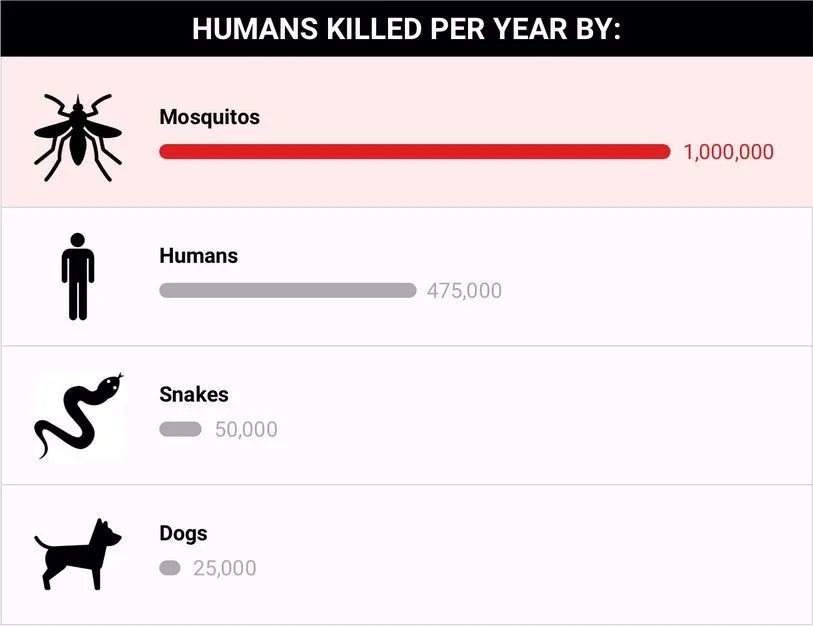Mosquitoes can kill up to one million people a year – twenty times more than snakes, which "only'' kill 50,000 people a year. And, you can't exactly tell if a mosquito is carrying dengue, zika, malaria, or chikungunya, so they're better ZAPPED than sorry!